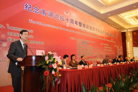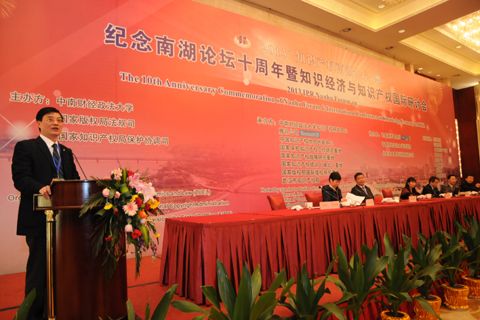 吴汉东在致辞中介绍,南湖论坛至今已举办十届。论坛历来关注知识产权发展的理论和现实问题,是中外知识产权学者高水平对话、高层次学术交流的重要平台,也是法律界、企业界之间探讨知识产权问题的高峰对话。本届论坛的一个重要命题是知识产权与知识创新。知识产权与创新联系在一起,坚持制度创新与经济创新,这是中国知识产权法的时代使命。吴汉东指出,凡是知识进步与经济繁荣的国家,都是知识产权制度健全与完善的国家。对这些国家而言,知识产权既是发展战略的选择,也是综合国力的体现。实施创新驱动发展,是重要的强国战略。中国只能走自主创新、建设创新型国家的发展道路。