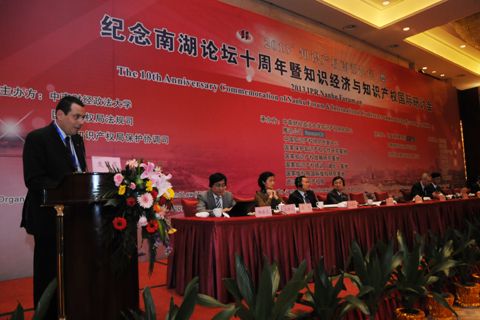 李明德表示,南湖论坛的规模不断扩大,影响力愈加广泛,已成为知识产权届的学术盛宴。来自世界各地的知识产权专家学者和实务工作者汇聚于此,为进一步促进知识产权事业的发展,加快经济增长方式的转变、推动创新型国家的建设建言献策。南湖论坛的十年历程,也是中国知识产权发展的十年。随着科技的迅猛发展,国家知识产权制度和学术研究都发生了重大变化,要求知识产权实务工作者和学者专家具有更加广阔的国际视野。他也期待,在未来南湖论坛能为中国乃至世界的知识产权发展作出应有的贡献。
