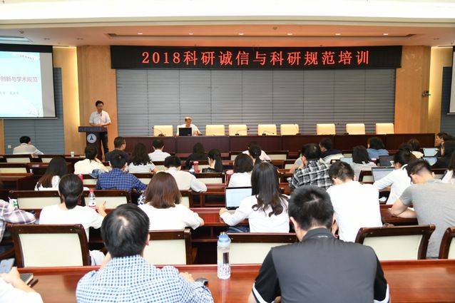 (通讯员:马高昂)9月26日上午,在我校2018年新进教师岗前培训班上,由人事部、科研部联合组织的“科研诚信与科研规范培训”专题讲座在中原楼七楼举行,特邀校学术委员会主任吴汉东教授担任主讲人,科研部张志刚副部长主持了讲座。