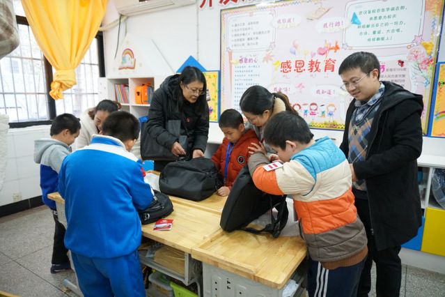 (通讯员 张今柯 摄影 胡天豪)12月11日下午,为贯彻落实学校“不忘初心、牢记使命”主题教育的工作要求,社科院科研部部分党员在支部书记、科研部副部长张志刚同志的带领下,前往武汉市盲童学校开展志愿服务活动,将爱心捐赠的部分书包一一送到二年级12位盲童手里,并教会他们如何打开、使用。