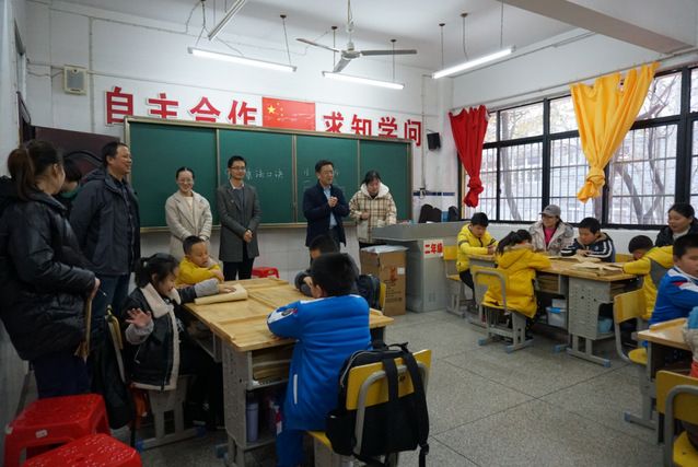 二年级教室里,12位盲童接过党员送的书包,一个个乐开了花。虽然他们的眼睛看不见,但他们用小手摸,用小脸蛋去摩挲,很快就在党员们的帮助下学会了怎么打开、使用书包。一位盲童反反复复拉书包上的拉链,脸上流露出幸福的笑容。陪读的家长也一起感受着孩子们的喜悦,一位盲童的奶奶笑着笑着眼眶都红了。班主任强若老师介绍说,另外一位盲童妈妈是从黄梅来的,为了陪读在学校附近租了房子,她还学会了盲文,能带着孩子一起“阅读”。