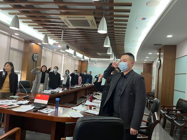 在支部副书记胡浩志同志、支部宣传委员张今柯同志的带领下,全体党员同志重温入党誓词、集体学习《中国共产党章程》第八章内容。