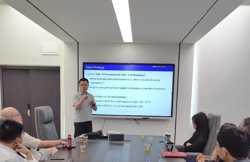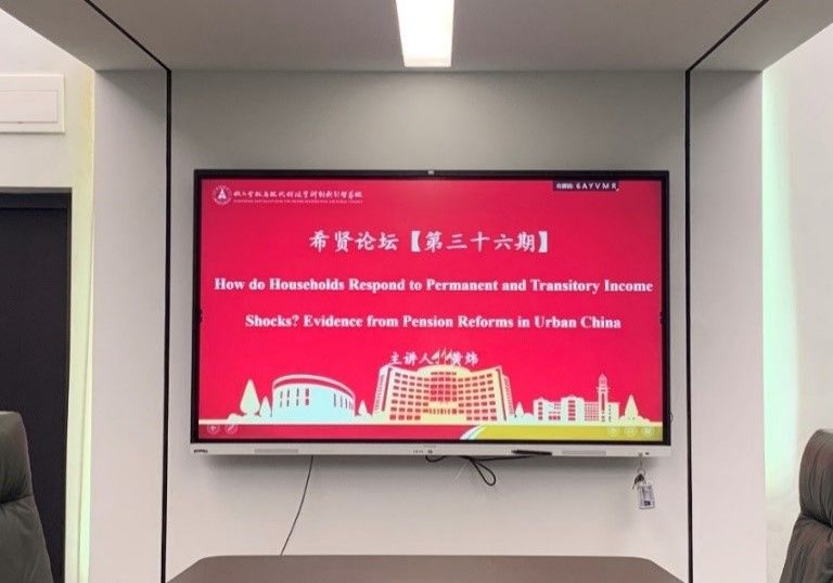 北京大学国家发展研究院黄炜副教授作为本期希贤论坛的主讲嘉宾,应邀作了题为“How do Households Respond to Permanent and Transitory Income Shocks? Evidence from Pension Reforms in Urban China”的学术讲座。论坛由收入分配与现代财政学科创新引智基地执行主任鲁元平教授主持,会计学院杨国超教授、财政税务学院赵颖副教授、鄢伟波副教授等师生三十余人参与了本次研讨。