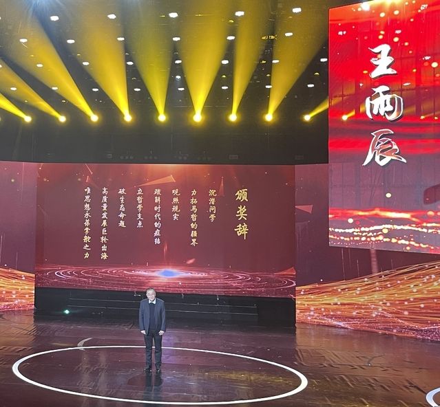 在致敬词环节,省社科联给王雨辰教授的颁奖词是:“沉潜问学,力拓马哲的疆界;关照现实,疏解时代的症结。立哲学支点,破生态命题,高质量发展巨轮出海,唯思想永葆掌舵之力。”这一评价,充分肯定了王雨辰教授的学术贡献和济世情怀。