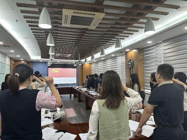 在规定动作环节,支部宣传委员肖加元同志带领全体党员重温入党誓词,支部王胜同志带领大家诵读《中国共产党章程》第九章《党组》、第十章《党和共产主义青年团的关系》和第十一章《党徽党旗》,会议还完成了2024年度党员5月党费交纳等事宜。