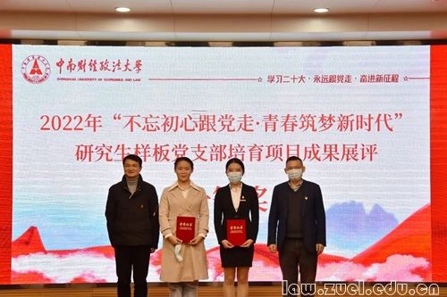 通讯员(周格格 曾怡然)为学习宣传贯彻党的二十大精神,学习领会习近平新时代中国特色社会主义思想,贯彻落实《中国共产党普通高等学校基层组织工作条例》,巩固拓展研究生党建示范创建和质量创优成效,进一步做好2022年“不忘初心跟党走·青春筑梦新时代”研究生样板党支部培育项目的结项验收评审工作,总结、交流项目培育建设经验,党委组织部、党委研究生工作部于2022年12月9日下午在文澴楼同声传译会议中心举办了2022年研究生样板党支部培育项目成果展评会。