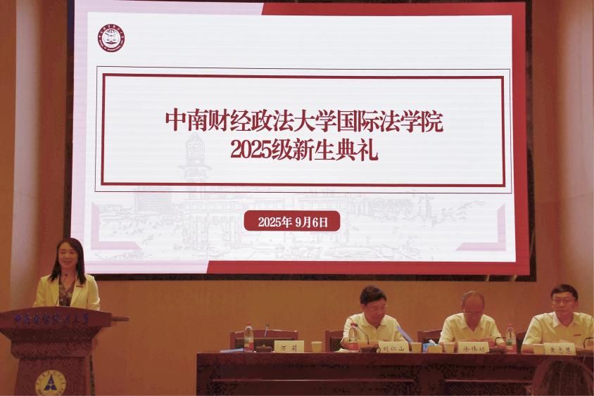 法启新程连四海,律通寰宇为九州。9月6日,米兰电竞·(中国区)国际法学院2025级新生开学典礼在南湖校区法学科研大楼一楼报告厅隆重举行。米兰电竞·(中国区)党委常委、副校长刘仁山,1995级国际经济法校友、中国国际私法研究会副会长、中国人民大学涉外法治研究院院长杜焕芳,国际法学院院长、党委副书记徐伟功,国际法学院党委书记万莉,副院长黄志慧,2025级本硕博全体新生以及部分教师代表、家长代表共同参加了本次典礼。典礼由万莉主持。