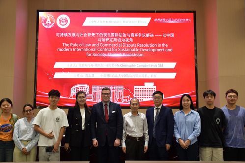 在讲座环节,坎贝尔-霍尔特先生首先通过数据与案例,生动展现了中国与哈萨克斯坦之间合作的深度与广度,证明了两国的经贸合作是可持续发展理念在区域实践中的典型范例。与此同时,国际商事纠纷类型的多样化,涵盖了投资保护、知识产权、基础设施、环境责任等多个新领域。借此,坎贝尔-霍尔特先生抛出了本次学术讲座的中心问题:在经济全球化和区域经济一体化背景下,一国如何通过法治,高效解决国际商事争议,公正维护各方利益,从而实现可持续发展的多元目标。坎贝尔-霍尔特先生以自己的任职经历为例,详细阐述了其推动建立的阿斯塔纳国际金融中心法院和国际仲裁中心的运行情况。同时,他大力赞扬中国最高人民法院国际商事法庭推行的“一站式”争议解决模式。随后,坎贝尔-霍尔特先生深入阐释了法治(rule of law)与法制(rule by law)的区别,系统梳理了国际法治的基本原则,并明确指出:以国际商事纠纷多元化解决机制为典型代表的中国法治实践,正不断向世界传递独具价值的中国智慧、贡献切实可行的中国方案。