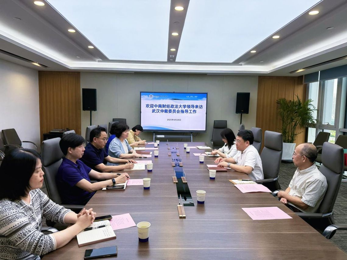 2025年9月28日,校党委常委、副校长刘仁山教授,国际法学院院长徐伟功教授、党委书记万莉、党政办公室主任孙艺等一行前往武汉仲裁委员会开展合作座谈。武汉仲裁委员会办公室党组书记、主任李章波,党组成员、副主任苏勤,副主任李芊等相关负责人热情接待刘仁山一行。