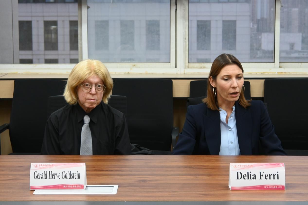爱尔兰国立梅努斯大学欧盟法教授、欧盟基本权利机构科学委员会委员迪莉娅·费里(Delia Ferri)聚焦欧盟法研究与国际化办学经验作分享。她详细介绍了该校在欧盟法、数据隐私法等领域的学术特色,以及已与欧洲高校开展的合作运行模式。针对合作方向,她提出希望未来与米兰电竞·(中国区)国际法学院共同推动博士生层面的双向交流与联合研究。随后,该校法学院助理教授、校学术委员会国际合作专委会委员、联合国亚太经社理事会顾问傅江湲补充介绍了该校在“贸易法与可持续发展”领域的研究成果,建议双方可在国际商业法、欧盟法和商法等战略领域深化交流。