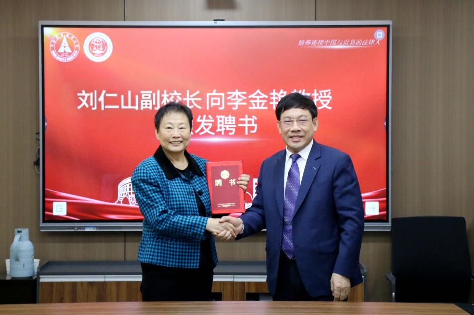 在全体与会人员的热烈掌声中,刘仁山副校长向李金艳教授颁发聘书。