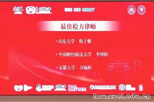(图三 我校代表队检方庭辩律师李坤阳荣获最佳检方律师庭辩奖)