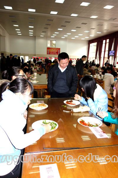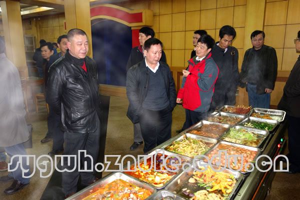 杨校长时刻牵挂着首义校区的同学们学习和生活的情况。在听取了工作汇报后已过正午,杨校长一行率全体参会人员来到了首义校区学生食堂,实地了解食堂的餐食供应情况和同学们的亲身感受。杨校长先后来到清真餐厅、普通售饭窗口和自助餐区域,查看了饭菜品种和质量,并和同学们一同在食堂就餐。杨校长和部分同学亲切交谈,关切的询问他们吃不吃得饱?感觉饭菜价格贵不贵?质量怎么样?