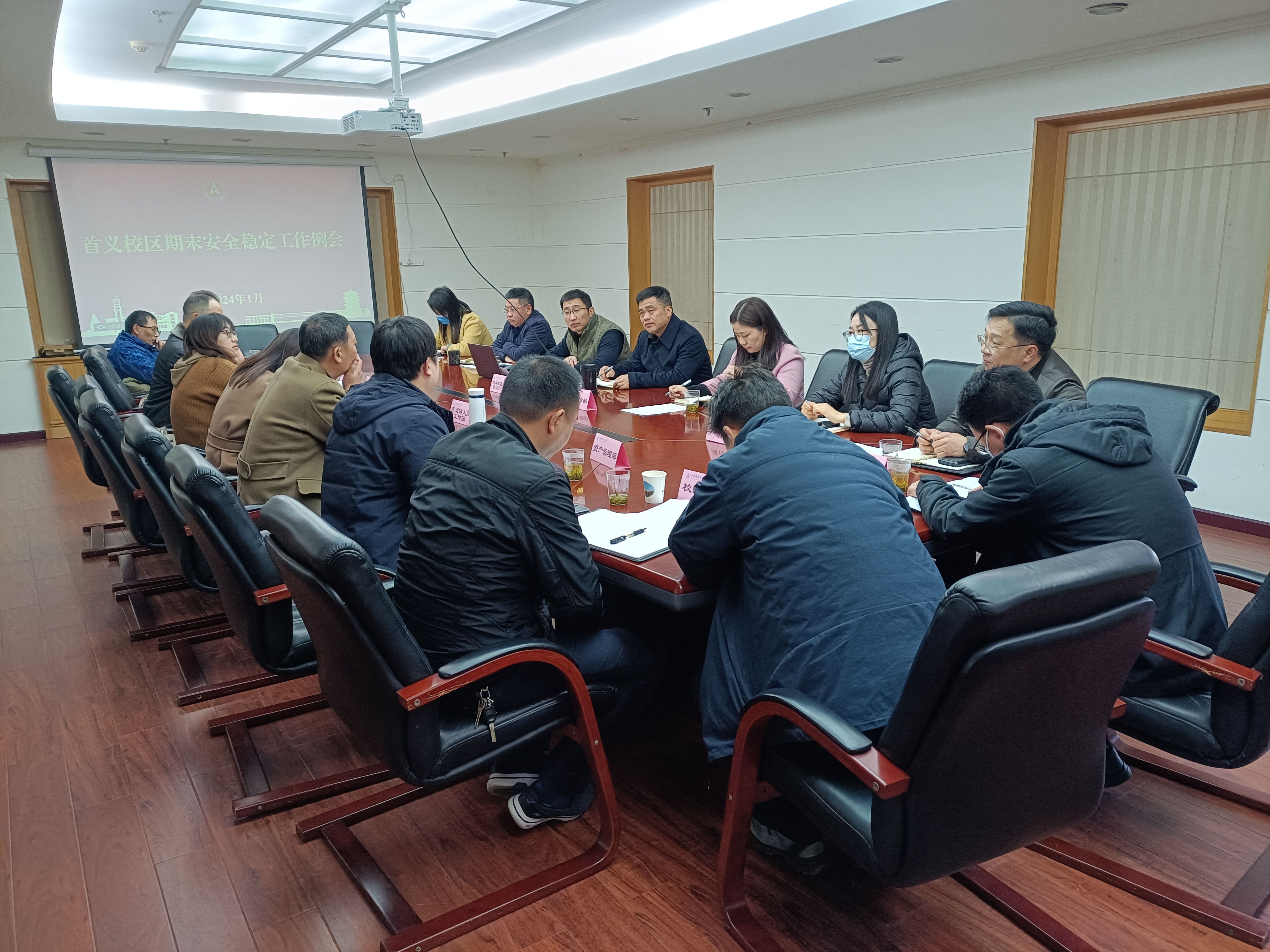 首义校区党委书记、综合管理办公室主任詹万明作总结讲话,他要求:一是要高度重视,增强学校安全稳定工作主动意识和责任意识;二是要做到职责明确、防范措施到位、有工作台账、有应急预案;三是按照发给各参会单位的《首义校区安全稳定风险排查表》,认真细致地开展自查,结合自查的情况,在寒假期间完成自查问题的整改,春季开学后将就没完成整改的问题或整改有难度的问题再次开会协商,推进各个问题的解决和落地。四是要强化工作落实,抓好督促检查,严格落实责任问责制,会议还布置了首义校区下一阶段的有关工作。