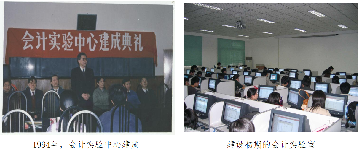 会计实验中心自1994年成立以来,便以卓越的教学实力和领先的设施水平闻名遐迩,堪称国内一流水平。1995年起,实验中心开始为本科生、研究生提供会计、财务与审计专业实验,年均实验教学工作量位居学校前列。2005年,学校整合经济管理专业实验教学资源,组建经济管理实验教学中心,设立工商管理、财税、会计、金融、经济学、统计与数学六个实验教学区。2007年,经济管理实验教学中心获批国家级实验教学示范中心,会计学院作为成员单位,为中心的建设和发展作出了卓越贡献。