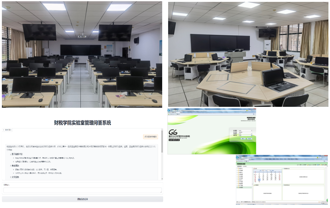 技术升级,智享未来。财政税务学院实验室占地234平米,分为财税业务模拟实验室和公共经济实验室。财税业务模拟实验室配专注于模拟财税业务的实践教学,帮助学生通过角色扮演提升动手能力。实验室安装了财政业务系统、用友A++、税务稽查实训等软件,支持财政学、税收等多门课程的教学需求,为学生提供理论与实践相结合的训练平台。公共经济实验室主要用于实验经济学、公共经济研究等领域的实验教学和政策模拟。实验室安装了Z-tree和SPSS等软件,帮助学生深入理解公共经济理论,并提供了经济管理研究的技术平台。为跟上现代财税领域的发展,实验室逐步引入大数据、云计算、区块链等技术,提升实验实用性和智能化管理水平,推动学术研究和教学质量的提高。例如,通过大模型搭建的实验室管理问答系统,提升管理效率和服务质量。同时,CRP软件的引入让学生通过模拟政府预算编制和国库支付流程,培养预算管理与决策分析能力。