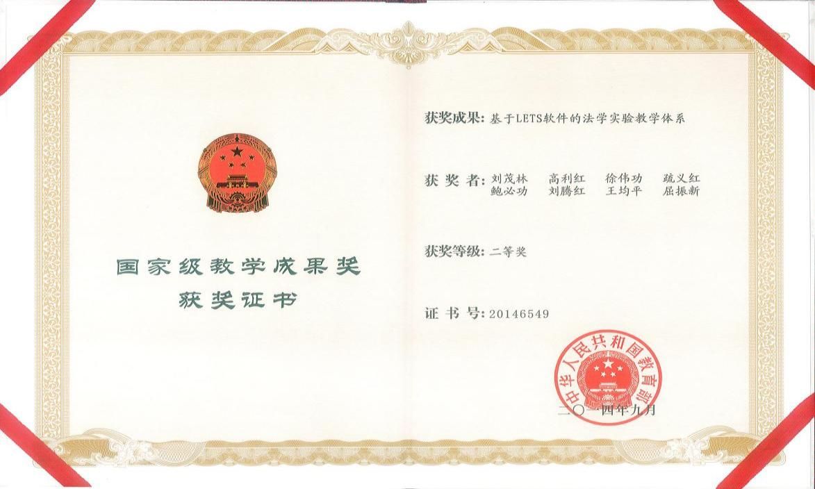 教学建设成果突出。在实验教学与理论教学并重的育人理念指导下,中心实验教学建设成果突出。1项实验教学成果获国家级教学成果奖二等奖,1项成果获国家级虚拟仿真实验课程,获批教育部虚拟教研室建设试点单位1个。学科竞赛成绩斐然。法学本科生辩论队取得杰赛普国际模拟法庭竞赛世界排名十二名、中国赛区第一,曼佛雷德拉克斯国际空间模拟法庭竞赛亚太赛季军,理律杯全国大学生模拟法庭比赛亚军,“法理争鸣”高校版权辩论赛冠军等系列荣誉。