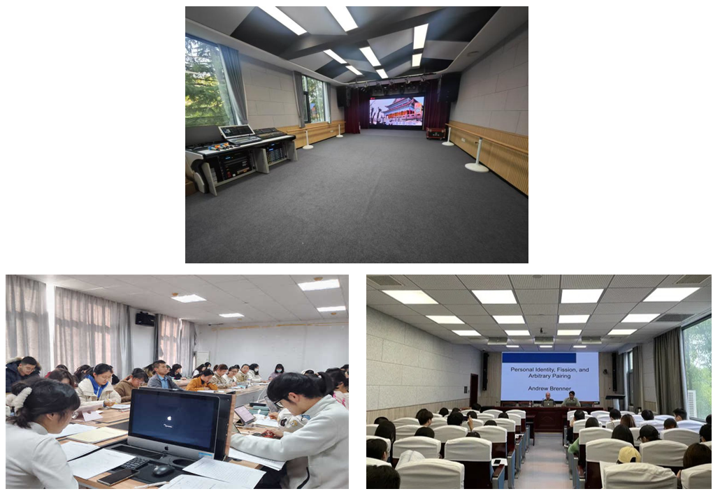 哲学院实验室面向全校师生开放,提供了预约借用实验室的便捷服务。实验室定期举办各类学术讲座、研讨会和工作坊,为师生提供了学术交流的平台,促进了学术思想的碰撞和创新。同时,刚建成的沉浸式哲学小剧场也将满足多种实训教学和学术交流需要。目前,学院已编排《河山之际》、《曙色》等多场剧目,并与合作单位编排《小王子》、《独一无二我是小狮子》等多部儿童哲学剧。