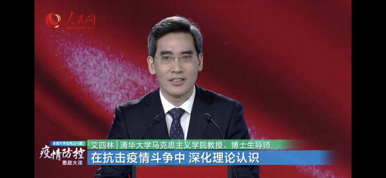 “习近平总书记多次召开会议,作出重要指示,亲自指挥、亲自部署,全国上下团结奋战、众志成城。抗击疫情的斗争,是一堂现实的思政课、一堂鲜活的思政课、一堂深刻的思政课、一堂难忘的思政课。”艾四林教授在开课伊始说道。他以“在抗击疫情中深化理论认识”为主题,从辩证唯物主义和历史唯物主义角度,论述了中国共产党人坚持群众路线,把人民群众的生命安全和身体健康放在第一位的初心使命。又从武汉华南海鲜市场的野外交易这一热点话题出发,引出“人与自然的关系”,从而阐述“人和自然是个有机整体”,提倡文明健康、绿色环保的生活方式。最后他提出,经过此次疫情,我们需要构建战“疫”命运共同体,总结经验,全世界一起,共同战“疫”。