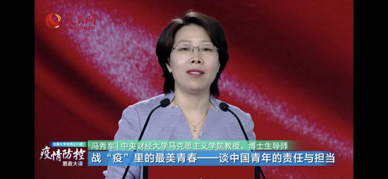 冯秀军教授从中国青年的角度出发,谈中国青年的责任与担当,论述了青年人在责任和担当中的“蝶变”。她用此次奔赴抗疫一线的医护人员中有三分之一是90后、00后这样一组数据,以及他们在一线乐观开朗、艰苦奋斗的事迹,定义了破茧成蝶的“非典型青春”。她又援引红军长征途中一个团为一个婴孩打仗的故事以及92年生的李宗玉在第一时间请战一线的故事,阐明了爱国是青年诸多责任之中最重要的责任担当。在国家和民族的历史传承之中,青年是每一个时代的接棒人,他们是救亡图存的一代,是建设国家的一代,是强国富民的一代。青年在这场战“疫”中须胸有大志、心有大我、肩有大任,必能谱写“大写青春”,必能助力这场战斗取得最终胜利!