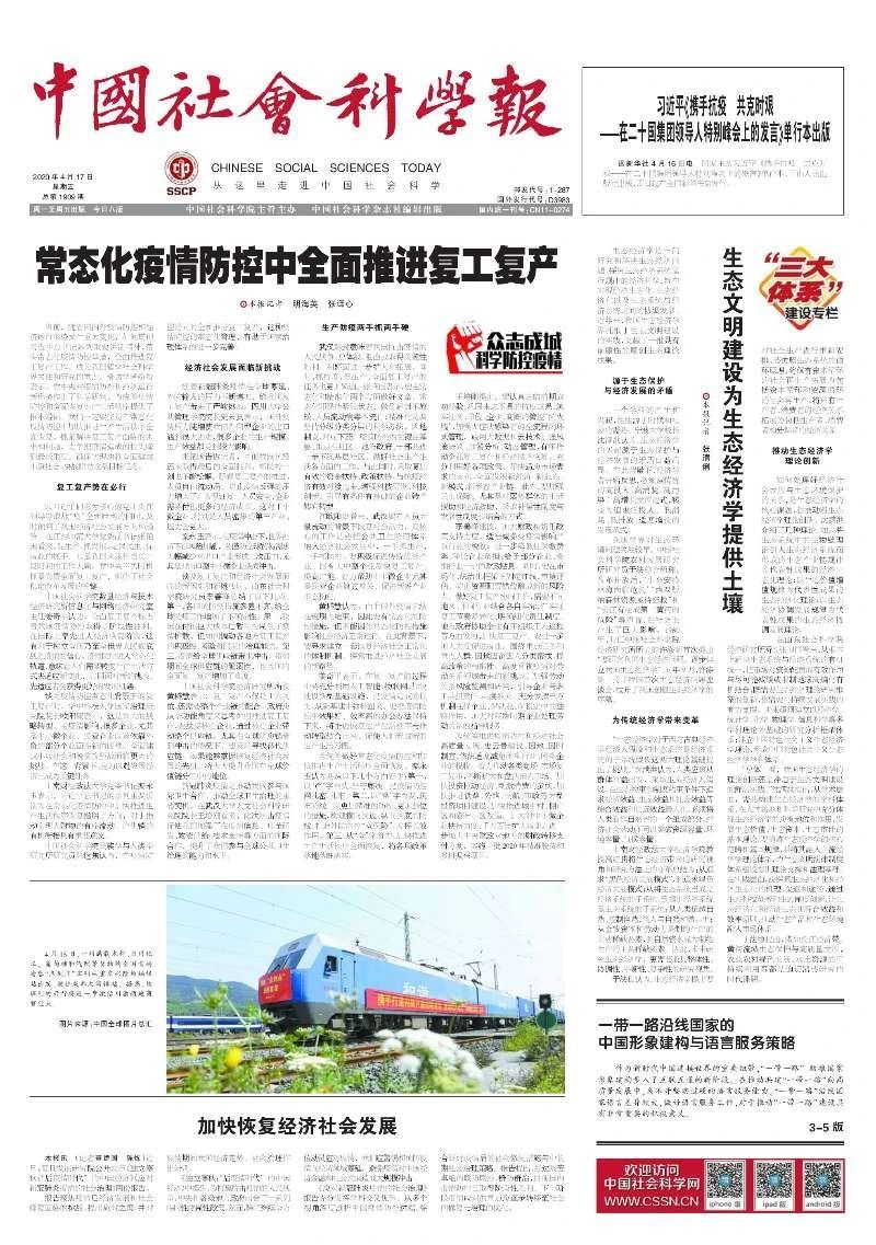 新闻网讯(通讯员 崔桢桢)继3月23日《中国社会科学报》头版头条采访栾永玉书记谈“巩固疫情防控成果”之后,4月17日,《中国社会科学报》头版头条再次采访栾永玉书记谈“常态化疫情防控中全面推进复工复产”,栾永玉书记在采访中提出,习近平总书记的系列重要讲话为在常态化疫情防控中加快推进生产生活秩序恢复指明了方向,对于推动实现人财物的有序流动、产供销的有机衔接具有重要意义。