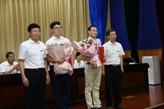 新进教师代表张旭斌、受表彰教师代表郭倍倍、高层次人才代表钱学锋分别在庆典上发言。