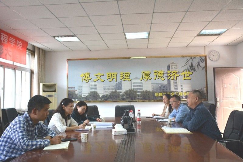 (通讯员 白高辉 摄影 白晋宇)10月12日下午,党委宣传部副部长徐江一行赴信息与安全工程学院开展调研,此次调研是学校“三全育人”综合改革和“五个思政”专项试点调研第四站。信息与安全工程学院党委书记张从发,院党政办主任陈溪,院党务秘书杨晨等参加了座谈。