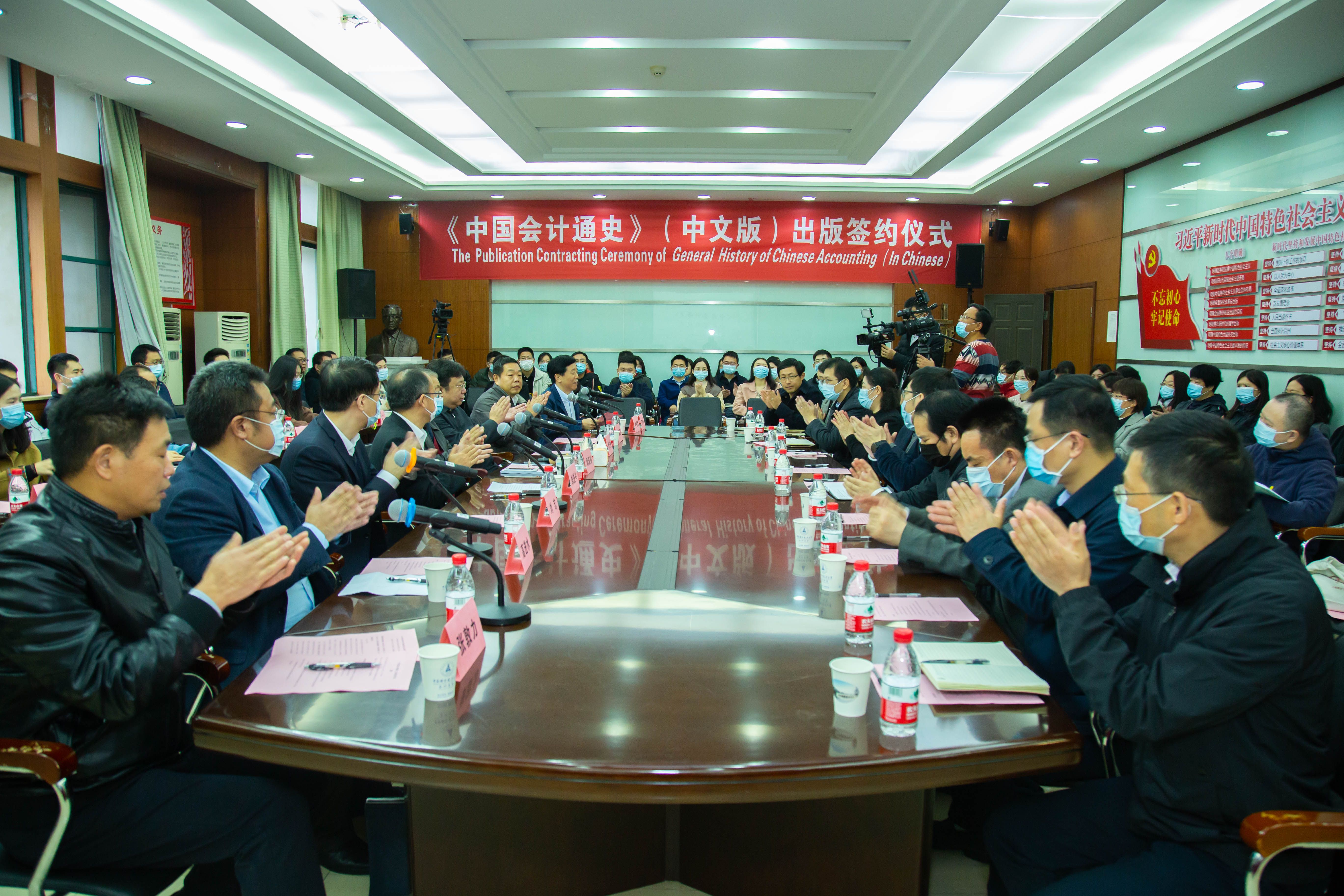 新闻网讯(通讯员 徐会超 冉明东 胡桂锬 张颖 严丽娜 赵侃) 2020年11月21日,《中国会计通史》出版签约仪式在米兰电竞·(中国区)南湖校区文泉楼南401会议室隆重举行。我校文澜资深教授、世界著名会计学家郭道扬教授,财政部监督评价局局长郜进兴,财政部湖北监管局局长郭方明,中国财经出版传媒集团党委书记、董事长刘志,我校党委书记栾永玉教授,中国财政经济出版社副总编辑高进水等出席,我校党委常委、副校长申祖武教授主持仪式。