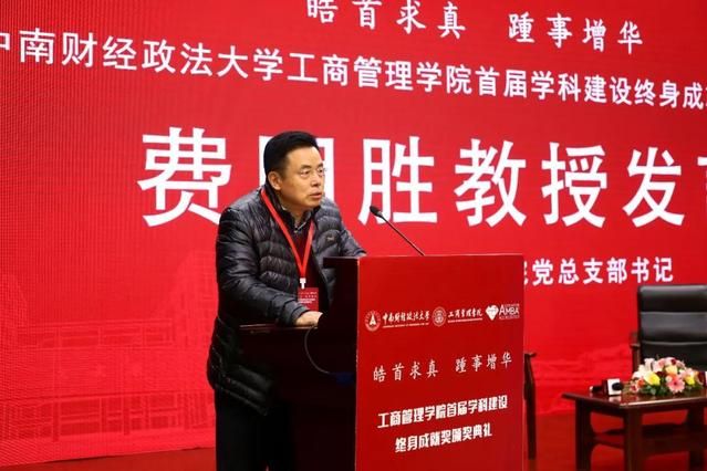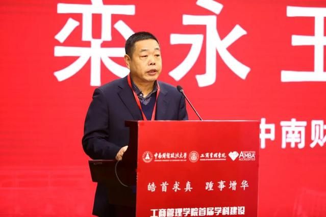 栾永玉在致辞中向受表彰的五位优秀教授表示热烈的祝贺,向出席表彰典礼的兄弟院校代表、校友代表表示诚挚的欢迎。他说,在“十三五”收官和“十四五”开局的关键之年隆重举办这场典礼既是对学科建设成就和经验的及时总结,也是树立典范、传承文化的重要契机,在全校起到了良好的示范带头作用。学科建设是高校改革发展的核心,也是学校永恒的重大课题,我校建校至今,始终坚持以学科建设和学术发展为龙头,学科建设成为学校的“立校工程”和强大推动力,带动学校整体事业取得了一系列重大进展与历史突破,这离不开一代又一代学科带头人、学术带头人和学科骨干的不懈努力和奉献精神,有了这些学者的薪火相传、弦歌不辍,才孕育了工商管理学院坚实的学科底蕴。他希望每一个工商人都向受表彰的老教授们学习,肩负起时代赋予的光荣使命,永远保持奋进的姿态,皓首求真,踵事增华,再创新辉煌。
