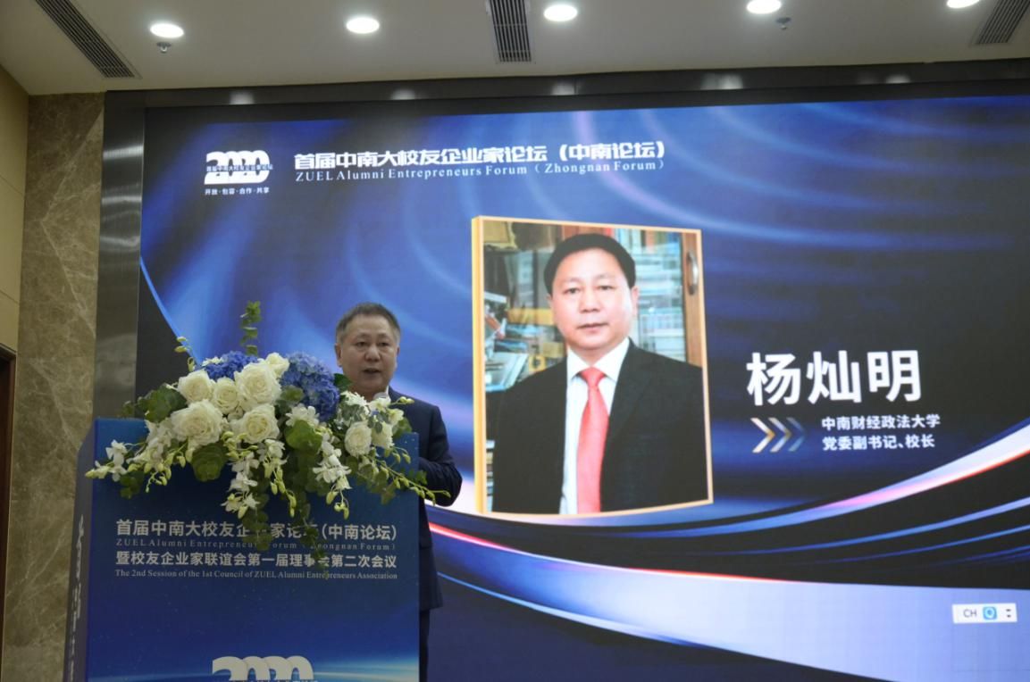 杨灿明在致辞中代表学校向出席论坛的校友企业家表示热烈的欢迎,对为疫情防控做出突出贡献的各位校友企业家表示衷心的感谢和崇高的敬意。他表示,校友企业家联谊会肩负着推动国家和社会发展的神圣使命,担子更重、责任更大,社会和学校的期望更高,希望校友企业家联谊会在今后发展中,依法办会、依规活动、依情相聚,成为各备案校友组织中凝聚校友、服务校友的标杆典范,也希望各位校友继续关心支持母校,共同推进母校一流学科建设,共同促进校友事业合作成长,谋求更高质量的发展。校友总会将更加富于激情、勇于创新、敢于担当地开展好工作,更好地关爱校友、服务校友、助力校友。