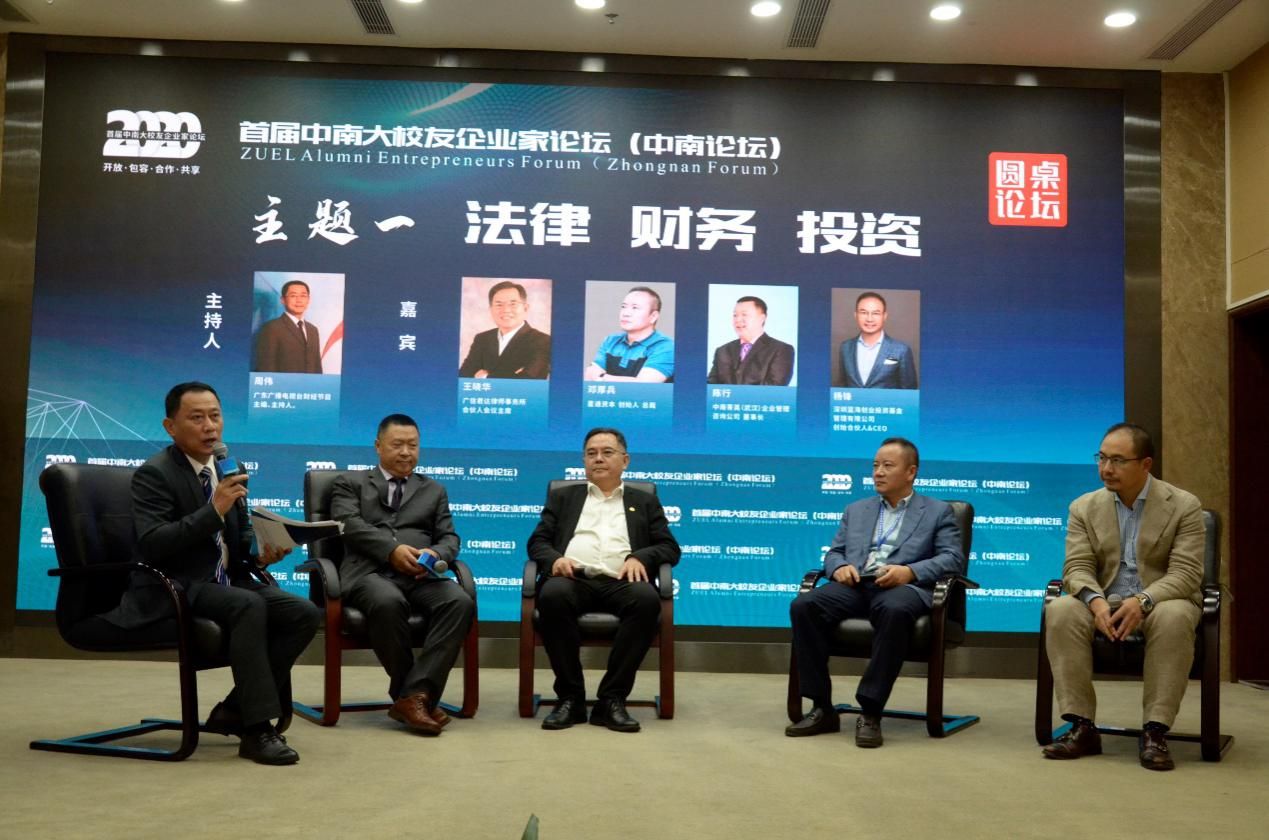 王晓华、邓厚兵、陈行、杨锋、车建新、邱火发、樊海峰、许征宇等校友企业家围绕法律、财务、投资、旅游地产、实业等主题在圆桌论坛上进行深入交流。嘉宾们从制造业、房地产、生物医药、金融科技、股权投资等中国经济的诸多领域前沿问题展开激烈交流,共同把脉中国经济,探讨后疫情时代的机遇和挑战。