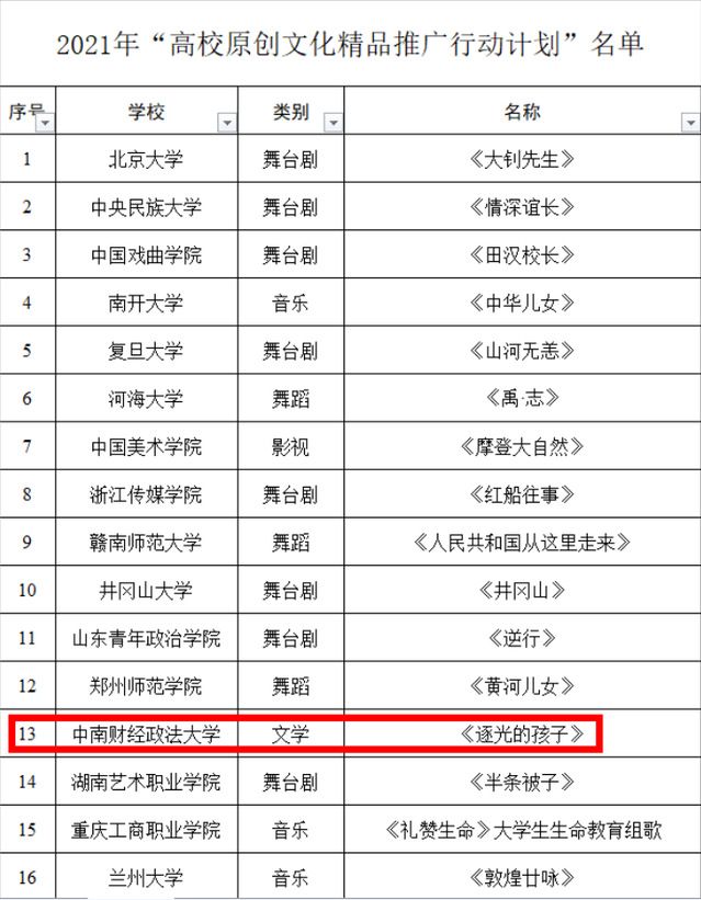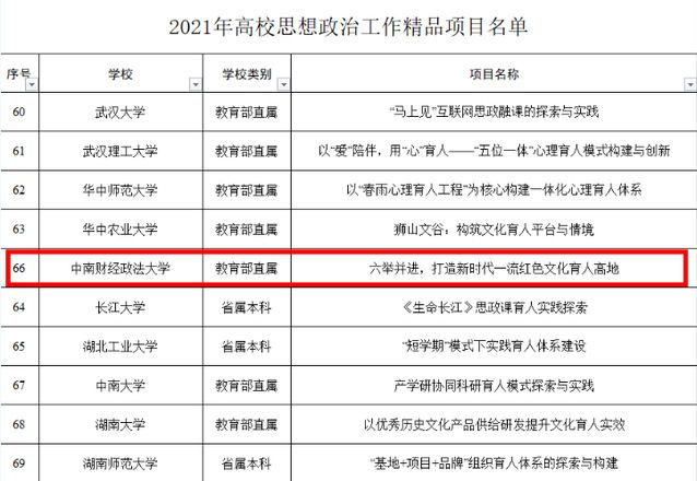 新闻网讯 3月18日,教育部思想政治工作司网站正式公布2021年高校思想政治工作有关培育建设项目入选名单,我校申报的《六举并进,打造新时代一流红色文化育人高地》获批教育部2021年“高校思想政治工作精品项目”,《逐光的孩子》获批2021年“高校原创文化精品推广行动计划”立项,立项数量创历年之最!