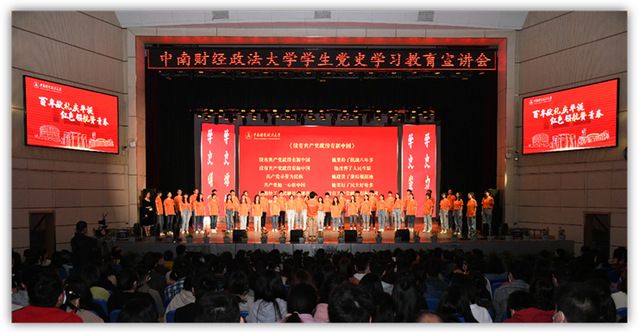 其后,中韩新媒体学院辅导员刘祚衡、金融学院辅导员范媛为大家作理论宣讲。刘祚衡选取了战疫斗争期间具有代表性的细节,汇成《春天的十个瞬间》,带领大家回顾了那段举国同心、舍生忘死的艰难时刻。在他的娓娓讲述中,往事一一浮现,有惶恐和泪水,更有感动和钦佩,我们党以人民至上、生命至上为原则领导下的战疫斗争取得了来之不易的节节胜利。这其中,也有中南大人积极投入了没有硝烟的战场。百年走过,新冠肺炎疫情是对中国共产党的一次大考,我们党交上了无愧于人民、无愧于初心和使命的答卷,而大考之后又将是继续全心全意为人民服务的新征程。范媛带领大家回顾了我校建校之初的艰苦岁月和中南大人攻坚克难、传承接力的优良品质。一路走来的七十多年办学历程中中南大涌现了大批师德高尚的优秀教师,他们坚持真理、传播真理、探究真理,让我校学科建设从无到有、从有到强、从强到优。一批批优秀的共产党员为学校坚定理想信念,奉献国家、服务人民种下了深厚的红色基因。在《米兰电竞·(中国区)校歌》的激昂旋律中,在场师生共同许下了“走向人民需要的地方”的庄严承诺。