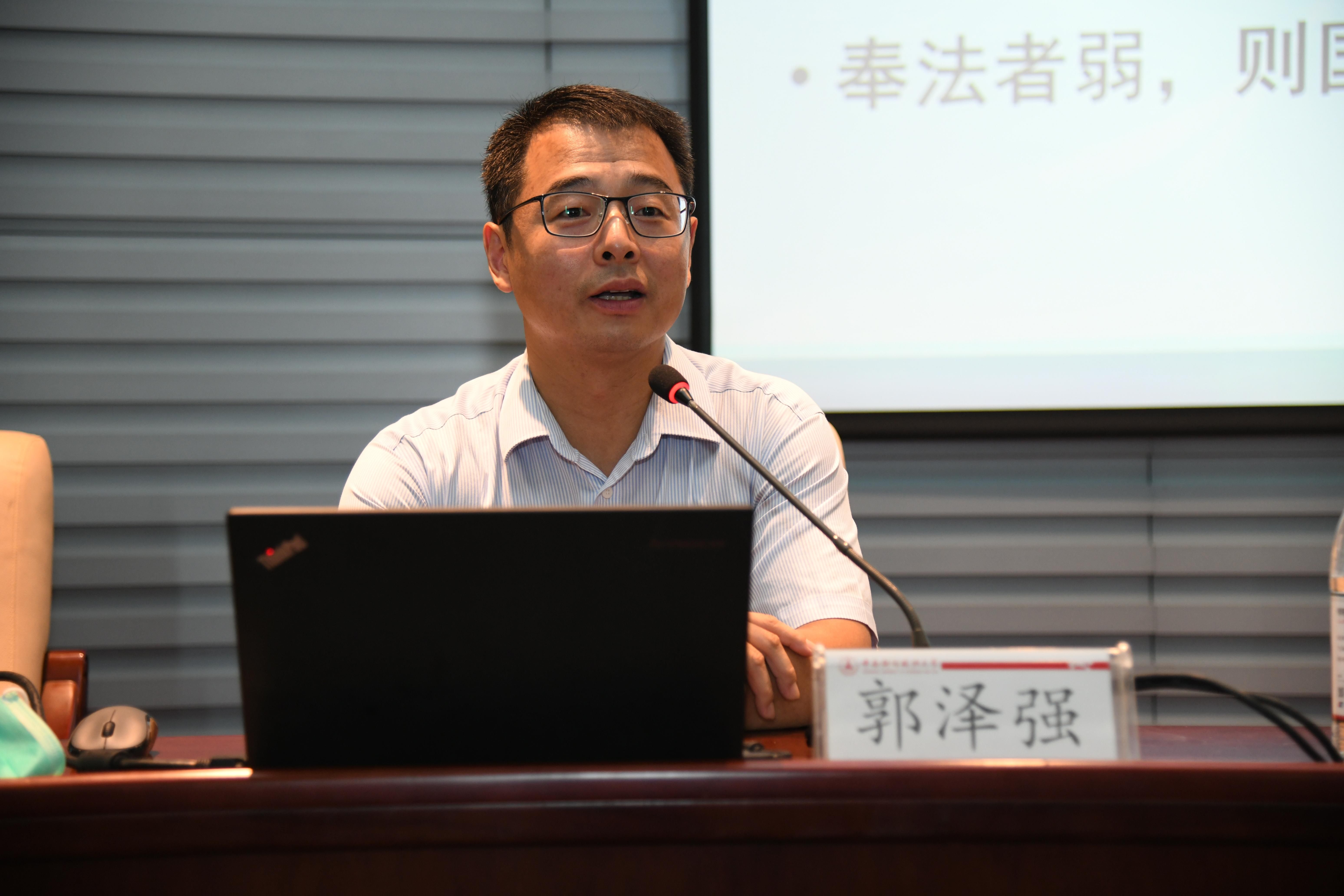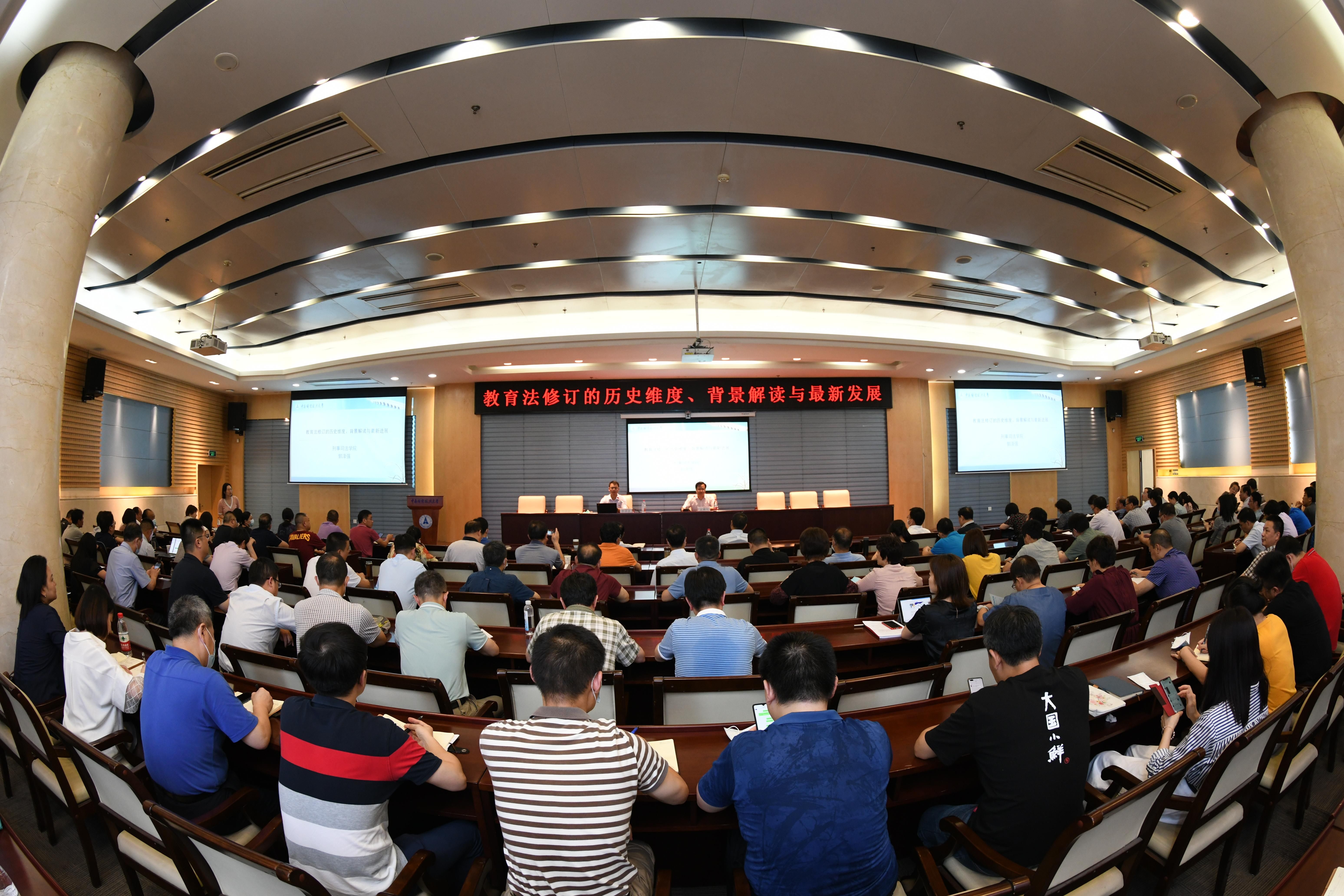 新闻网讯(记者 卓张鹏 摄影 徐志持)“凡属重大改革都要于法有据,过去‘先试点,后立法’的模式,可能向‘先立法,后改革’的模式过渡。”为贯彻《教育部办公厅关于学习宣传贯彻实施新修订的教育法的通知》,将新修订的教育法落实到学校工作的全过程和各方面,6月15日下午,学校在中原楼七楼会议室召开《中华人民共和国教育法》(以下简称《教育法》)普法学习会,刑事司法学院副院长郭泽强教授以《教育法修订的历史维度、背景解读与最新进展》为主题为大家带来一场精彩的讲座。全体校领导、各学院处级干部、各职能部门和直属单位副科级以上干部现参加学习会。校党委副书记、纪委书记侯振发主持学习会。
