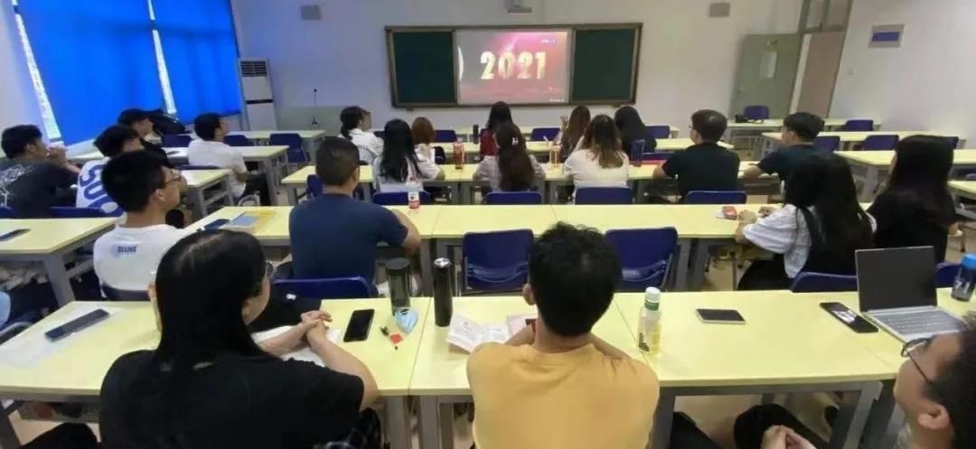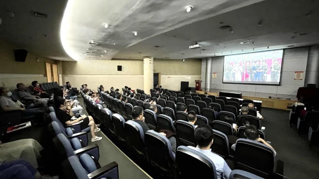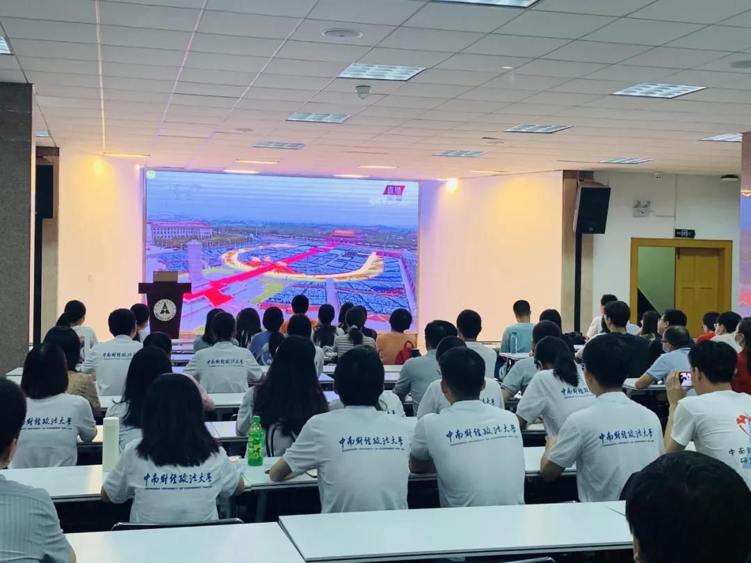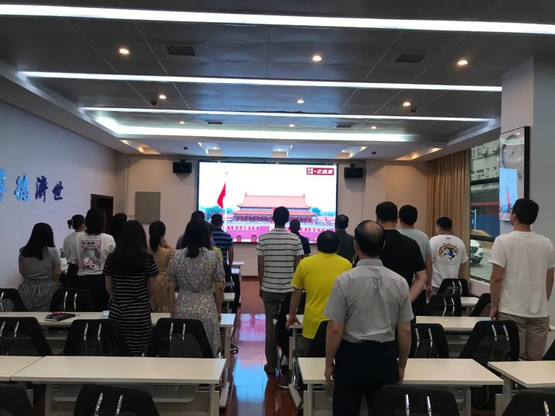 随着天安门广场“全体肃立”的声音响起,文泉楼报告厅内全体成员起立,迎国旗,唱国歌。