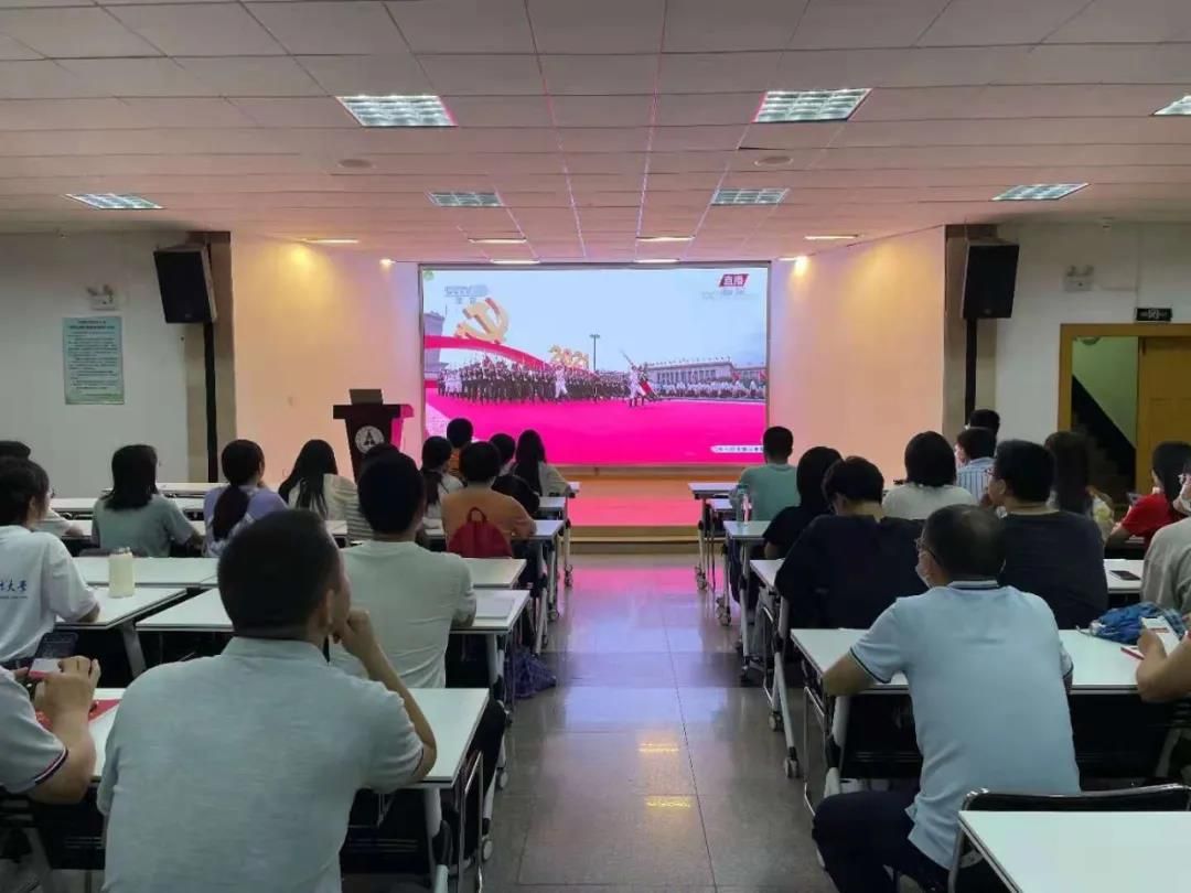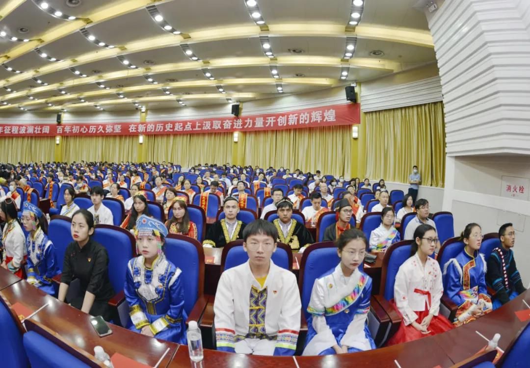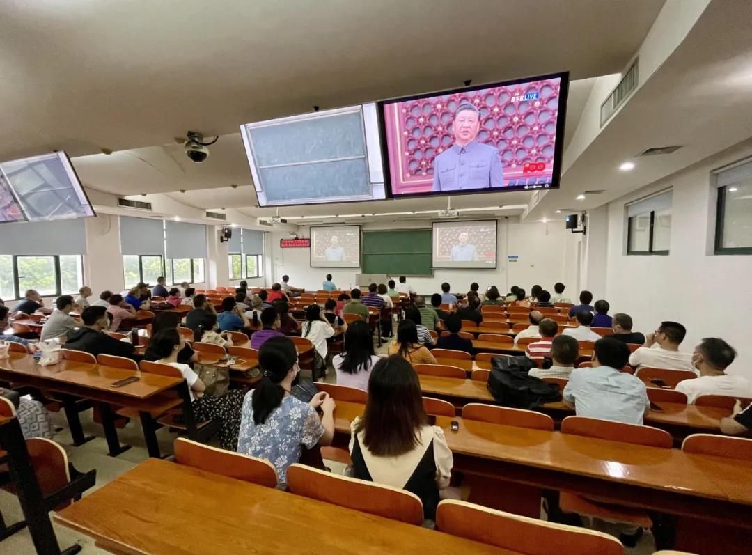 全体校领导,学校党史学习教育领导小组办公室全体成员,今年“七一”受表彰的先进集体和个人,机关党委各支部委员,各民族学生代表、留学生代表在文泉楼报告厅集中收看了庆祝大会直播。