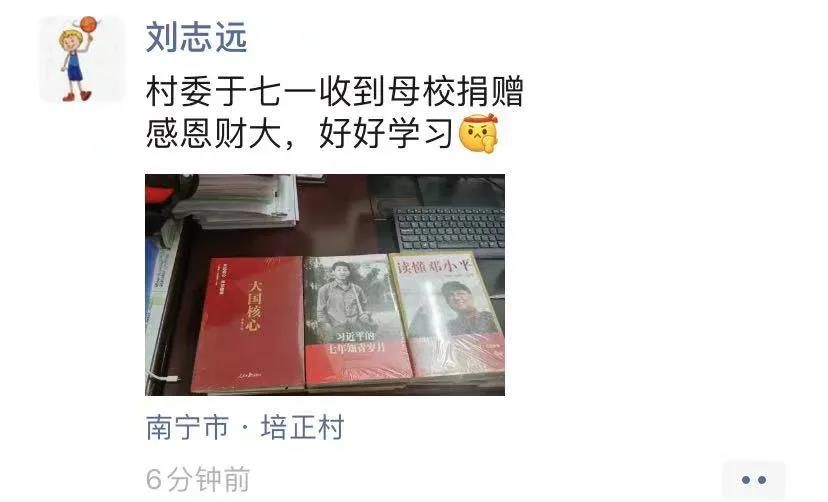财政税务学院党委对2020届毕业生刘志远同志所任第一书记的广西南宁培正村进行图书捐赠活动,部分图书于7月1日建党百年之际寄送到当地村委会,受到当地干部群众一致好评。