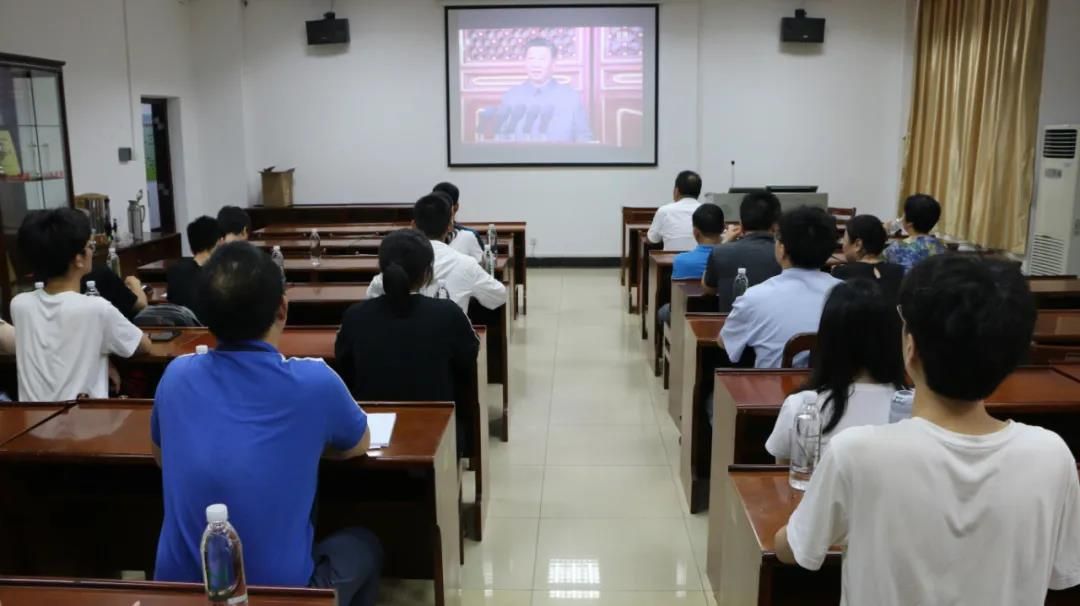 学校设立分会场,各二级党委、各二级单位组织广大党员、团员和师生群众采用统分结合等多种形式,利用多渠道、多途径、多形式收看庆祝大会直播。同时,学校还在各食堂网络电视播放庆祝大会,广大师生员工就近收看直播。