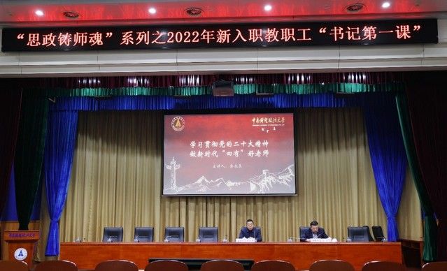 栾永玉带领大家重温了党的二十大精神,强调了要深刻认识教师在教育、科技、人才建设中的重要作用,树牢新时代的使命担当。他指出教师是教育强国的第一资源,要有“为党育人、为国育才”的使命担当;教师是科技强国的关键支撑,要有“博文明理、厚德济世”的使命担当;教师是人才强国的重要保障,要有立德树人,做“大先生”的使命担当,并号召广大青年教师赓续红色基因、传承优良传统,践行“四有好老师”标准,对标学校财经政法深度融通“一流大学”建设目标,落实立德树人根本任务,更好地履行岗位职责。