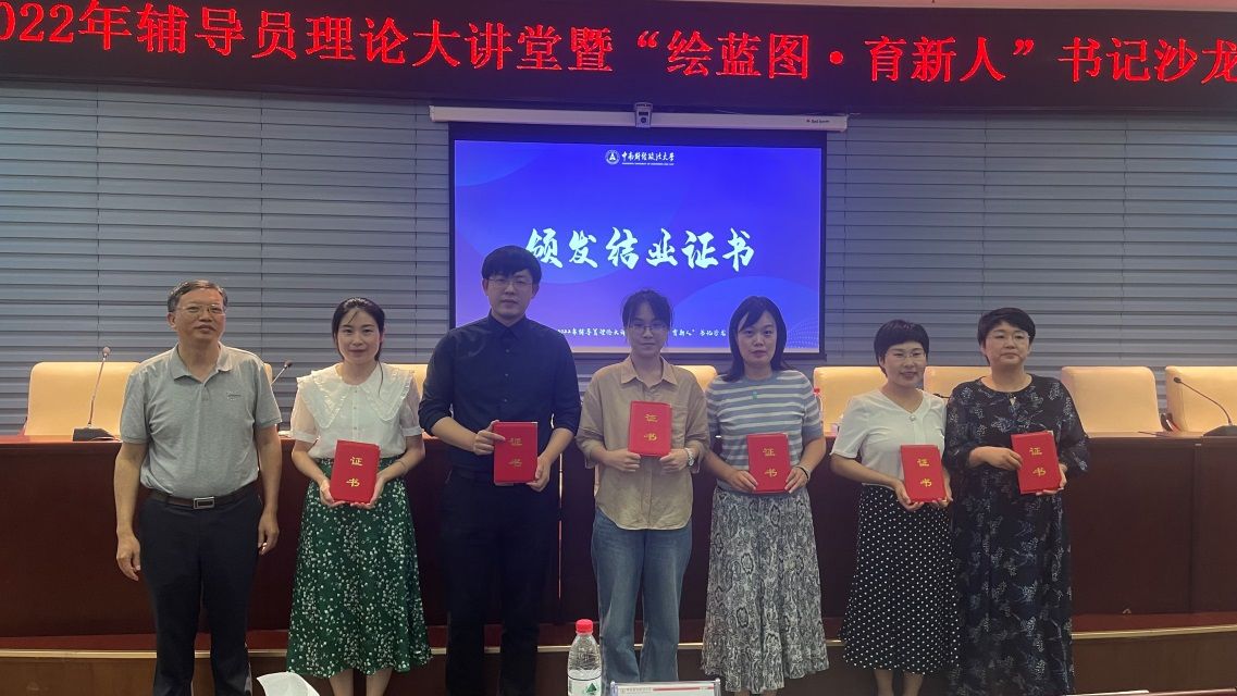 财政税务学院党委副书记吴兴华、金融学院学生工作办公室主任朱诚蕾、法学院辅导员褚晶晶、刑事司法学院辅导员黄文菊、经济学院研究生办公室主任岳明泽、新闻与文化传播学院兼职辅导员张雨舟在结业仪式上代表小组进行了研讨汇报。马克思主义学院党委书记邓杨全面介绍了新时代思政教育研究中心暨辅导员理论素养研修中心的建设情况。