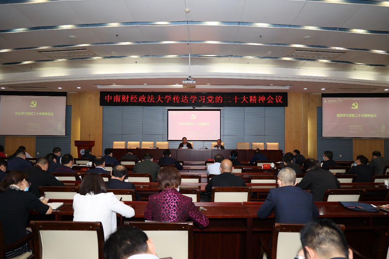 新闻网讯(通讯员 杜玥 摄影 杜鹏)10月25日下午,学校在中原楼7楼会议室召开传达学习党的二十大精神会议。全体校领导、全校中层正职干部、师生代表参加会议。