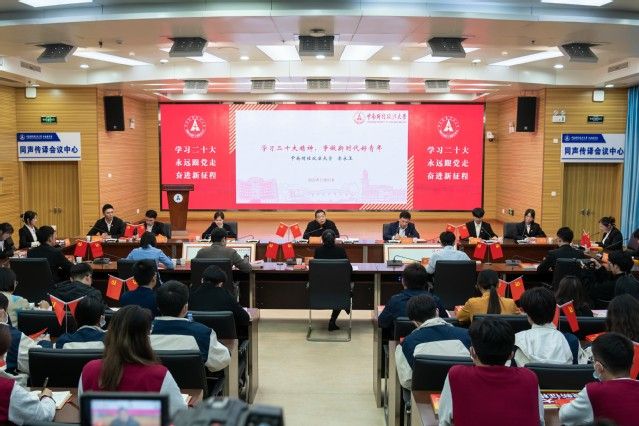 联学会采用了师生“串讲”的形式。湖北青年宣讲团讲师:校团委书记黄小妹、马克思主义学院副院长荣枢、法学院副教授徐小奔、体育部副教授李茵晖和2022年“湖北青年五四奖章”获得者、法学院台湾教师赖彦君结合自身专业和工作特点,围绕党的二十大报告中提出的中国式现代化、科教兴国战略等热点分享发言。“希贤学堂”学员,来自“青马班”“青松班”“青禾班”“青苗班”的10位学生代表,聚焦习近平总书记对青年的嘱托,分享了党的二十大精神学习心得,表达了不断磨砺和提升自己,立志做有理想、敢担当、能吃苦、肯奋斗的新时代好青年的决心。