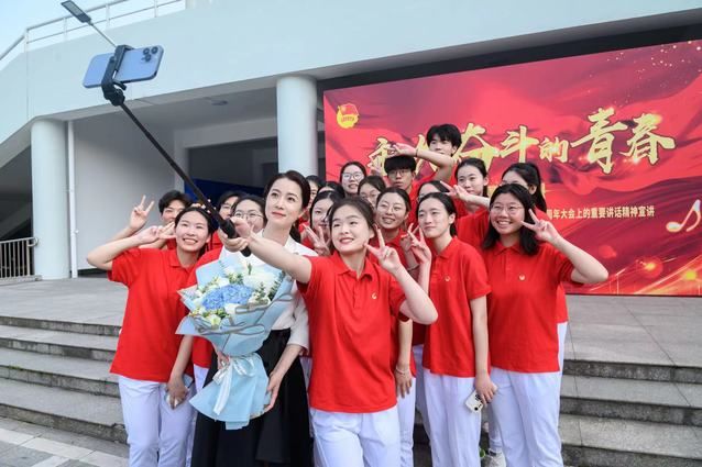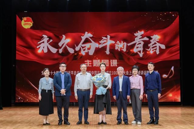 主题团课上,《没有共产党就没有新中国》《我的祖国》等经典歌曲,《五四特别版错位时空》《夜空中最亮的星》等流行旋律在会场交替唱响。在场师生集体合唱、掌声雷动,一同奏出新时代的筑梦强音。