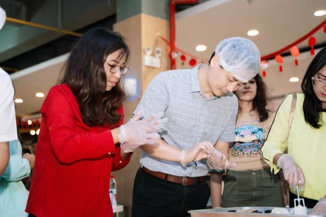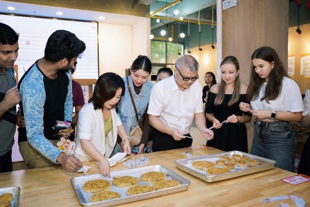 新闻网讯(通讯员 陈华飞)中秋逢国庆,天涯共此时。在双节即将来临之际,9月28日下午,国际教育学院联合后勤保障部,在望湖餐厅举办了“巧手做月饼·共话中秋情”国际学生中秋文化体验活动。来自俄罗斯、意大利、越南、阿根廷、巴基斯坦等20余个国家的80余名国际学生代表参加了此次活动。学校副校长徐涤宇、后勤保障部部长徐警武、国际教育学院院长郑影、后勤保障部副部长陈佳、国际教育学院副院长汪正君等莅临现场与同学们共庆佳节。活动由国际学生招生与培养办公室主任甘甜主持。