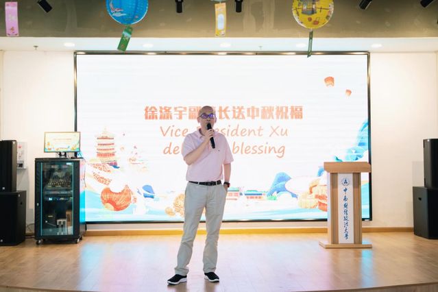 学校副校长徐涤宇慰问了参加活动的国际学生们,传达了学校的关怀,给国际学生们送上了美好祝福。他希望同学们沉浸式感受中国传统文化魅力,珍爱家人,珍惜亲情,热爱生活;祝愿来自全球各地的同学们度过一个平安、祥和、喜庆的双节。