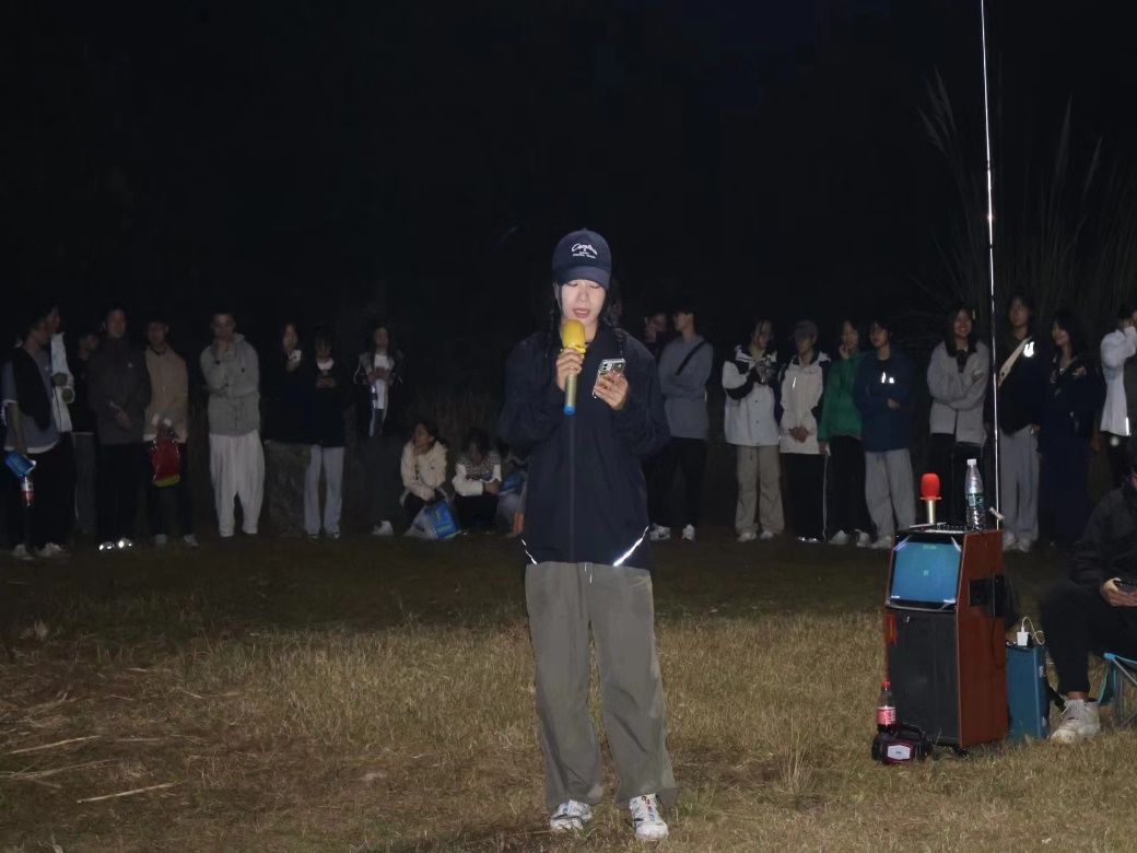 傍晚时分,同学们拿出提前准备好的食材和炊具生火做饭。集体合作过程中不仅提高了自己的野外生存能力,也增进了同学间友谊。晚饭过后,月亮高挂,繁星作伴,大家围坐一团,一起做趣味游戏,共同分享体验心得。研究生代表黄芊瑞同学发表了对此次环保主题户外运动课程实践的感想,并号召大家在日常生活中也要注意保护环境,树立健康和绿色生活理念。平静的山谷里回荡着欢声笑语,所有人都沉浸在快乐、热闹的氛围中。