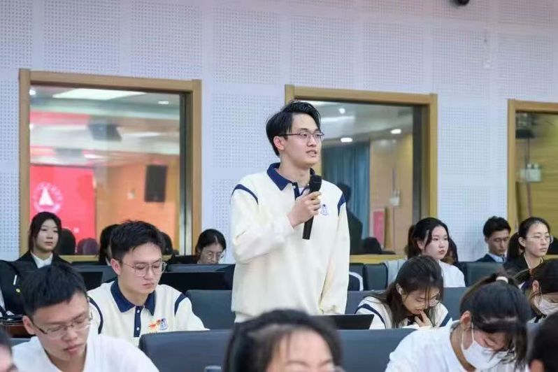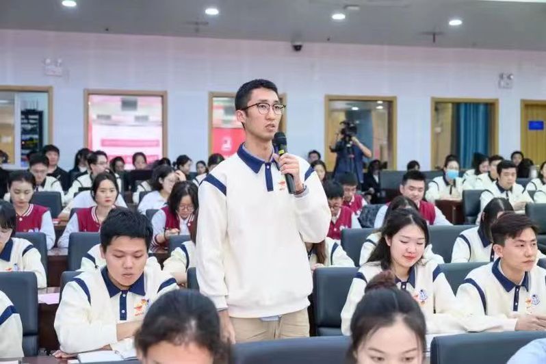 最后,“希贤学堂”第十六期“青”字班学员代表进行学习分享。青苗班优秀学员唐嘉祥结合自己响应大学生社区实践计划号召的经历,以“聚焦社区实践,奉献青苗之力”为主题进行了学习分享,并号召同学们积极参与到社区实践中去;青禾班优秀学员彭卓曦围绕“坚定青禾理想,争当支部领头雁”分享了自己的学习感悟,并对第十七期学员作出殷切的祝愿与期盼;青松班优秀学员蒋可可从“青春向阳,蓄势前行”为题,展现出在青松班一年以来的成长,结合自身经历诠释当代青年在学习生活工作中应当坚定理想信念、练就过硬本领;青马班优秀学员聂素青根据“青春建功新时代,唯有青马共成长”进行了分享,围绕个人实际探讨了青年人该如何作为;最后青凝班优秀学员何强老师从“以学为要”“以思固能”“以干增效”三方面分享了自己在“希贤学堂”中的成长与收获,并对同学们发出号召:以“希贤学堂”为契机,凝聚思想、凝聚价值、凝聚行动,与中南大学子携手在强国建设、民族复兴伟业中挺膺担当,共同为中国式现代化贡献青春力量。