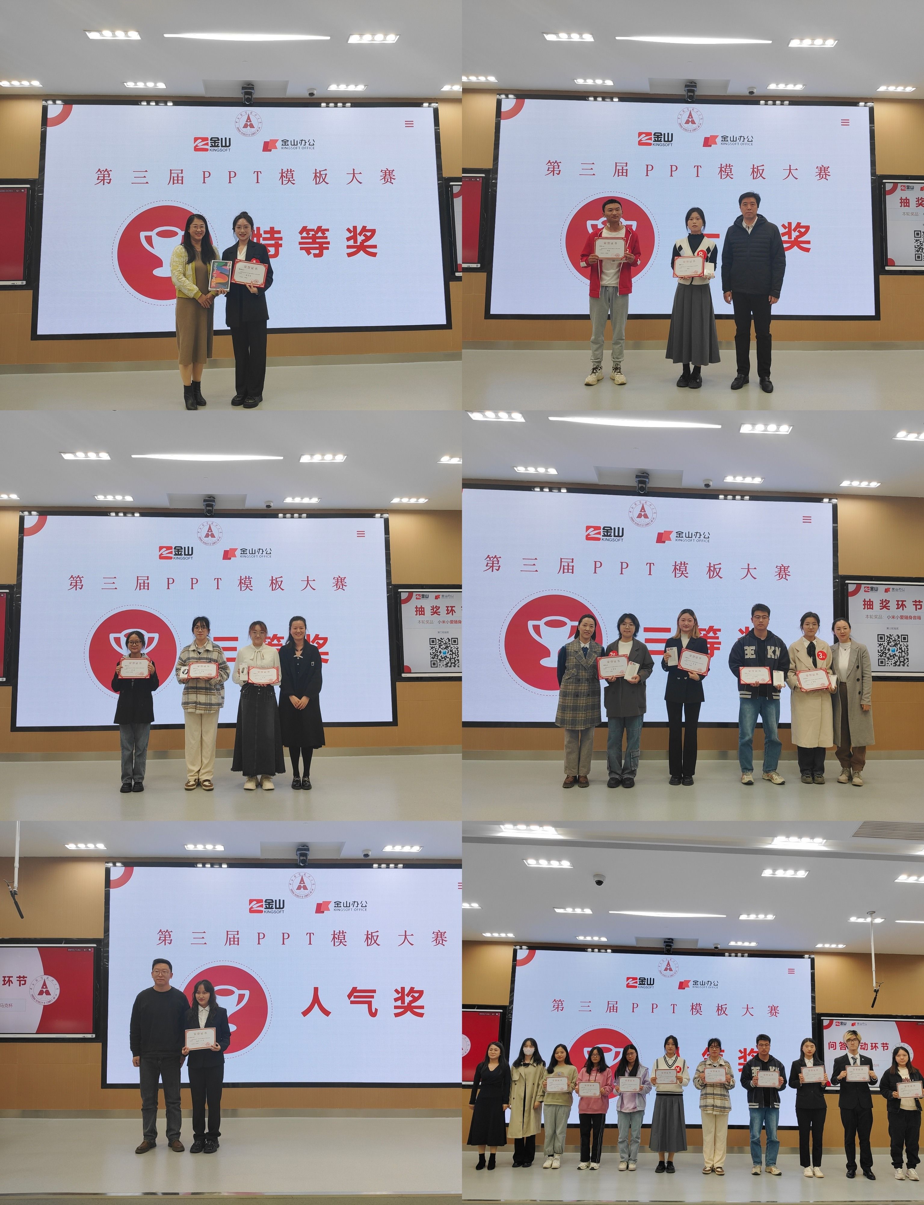 最后,参赛选手与颁奖嘉宾合影留念。至此,第三届PPT模板制作大赛落下帷幕。