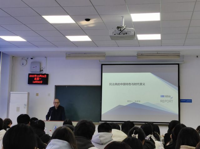 新闻网讯(通讯员 孙明扬)12月4日,恰逢全国法制宣传日、国家宪法日,副校长徐涤宇教授在文泰楼210为新闻与文化传播学院2023级本科生讲授了一堂别开生面的“普法”思政课。他以《民法典的中国特色与时代意义》为主题,带领同学们体悟中国特色社会主义法律体系的独特魅力。