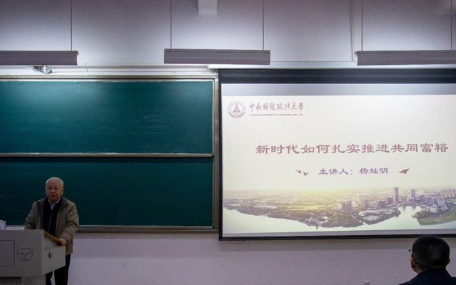新闻网讯(通讯员 金妮)12月11日,校长、党委副书记杨灿明以《新时代如何扎实推进共同富裕》为题,在南附楼203教室为数财(双)2201班和金融2203班的学生带来了一堂精彩而深刻的思政课。